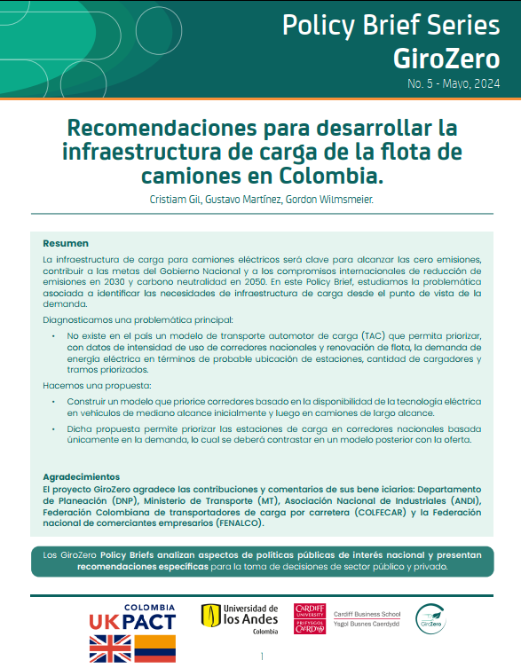 Policy brief: recomendaciones para desarrollar la infraestructura de carga de la flota de camiones en Colombia.
